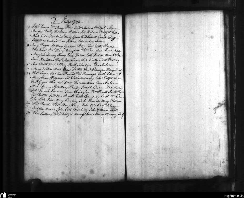 St. Catherine's, Dublin city; County of Dublin; Archdiocese of Dublin. Baptisms, July 1793