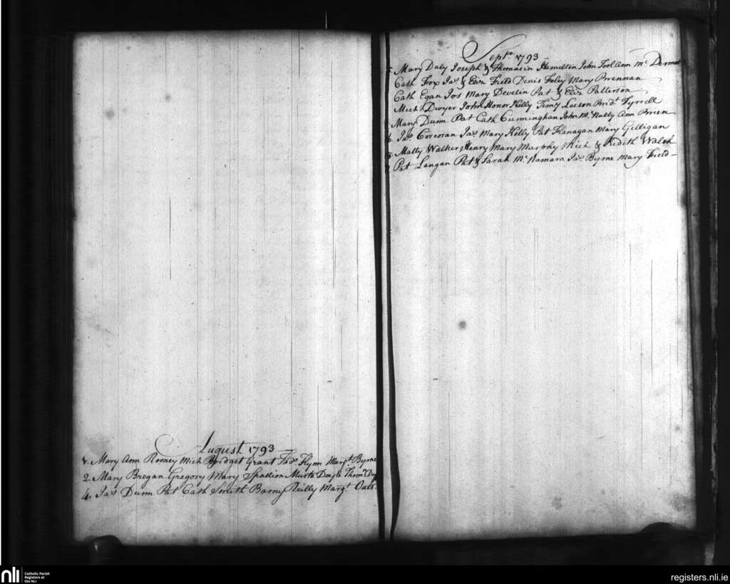 St. Catherine's, Dublin city; County of Dublin; Archdiocese of Dublin. Baptisms, Aug. 1793 to Sep. 1793