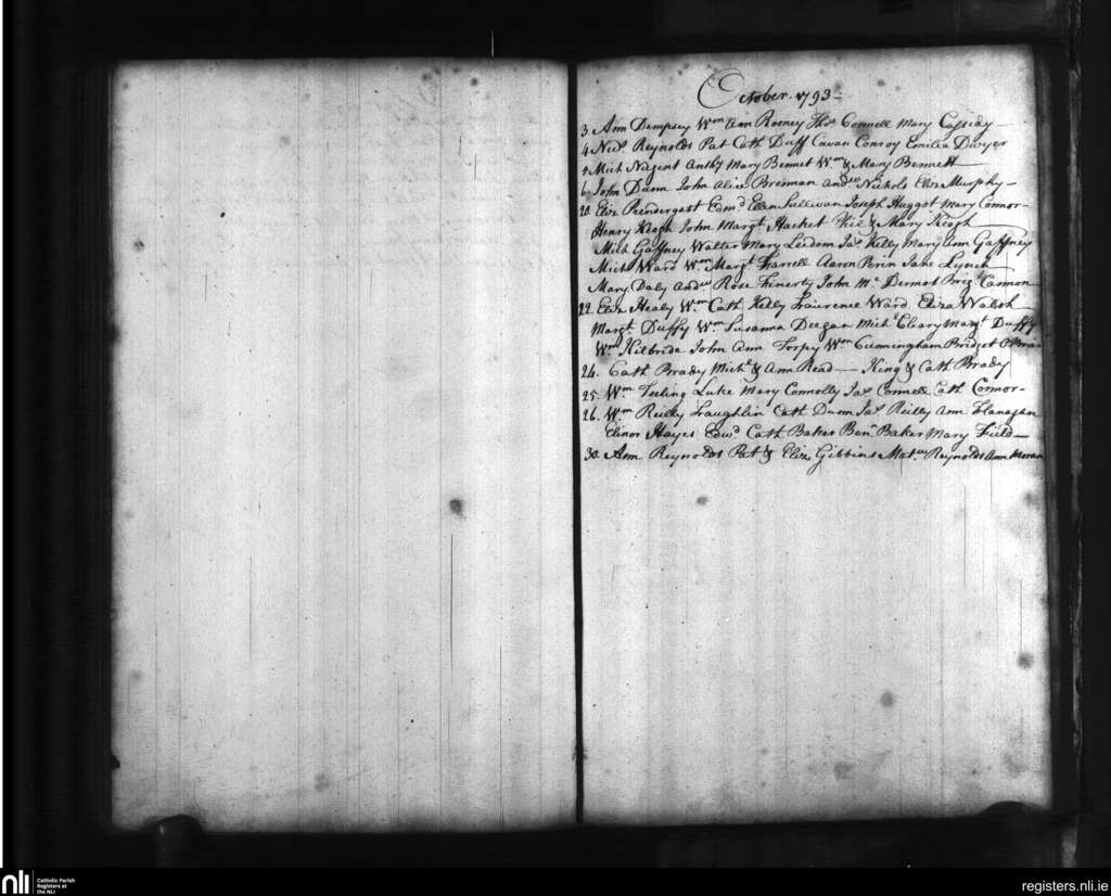 St. Catherine's, Dublin city; County of Dublin; Archdiocese of Dublin. Baptisms, Oct. 1793