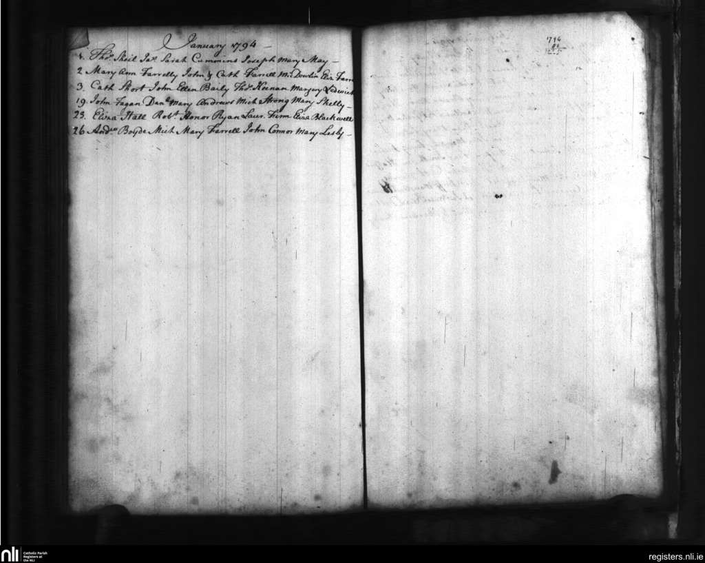 St. Catherine's, Dublin city; County of Dublin; Archdiocese of Dublin. Baptisms, Jan. 1794