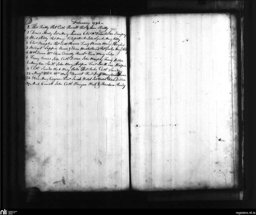 St. Catherine's, Dublin city; County of Dublin; Archdiocese of Dublin. Baptisms, Feb. 1794