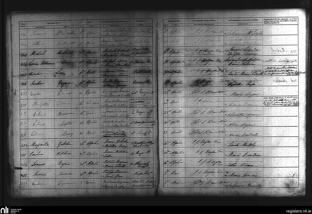 St. Laurence O'Toole's, Dublin city; County of Dublin; Archdiocese of Dublin. Baptisms, Apr. 1855 to May 1855