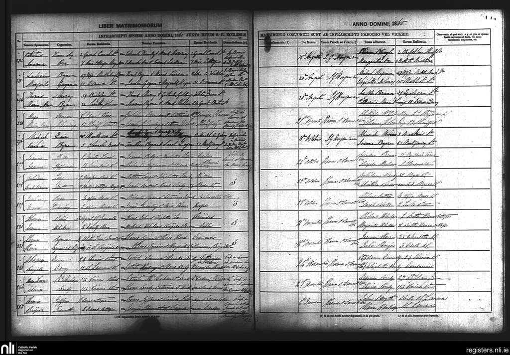 St. Laurence O'Toole's, Dublin city; County of Dublin; Archdiocese of Dublin. Marriages, Aug. 1865 to Jan. 1866