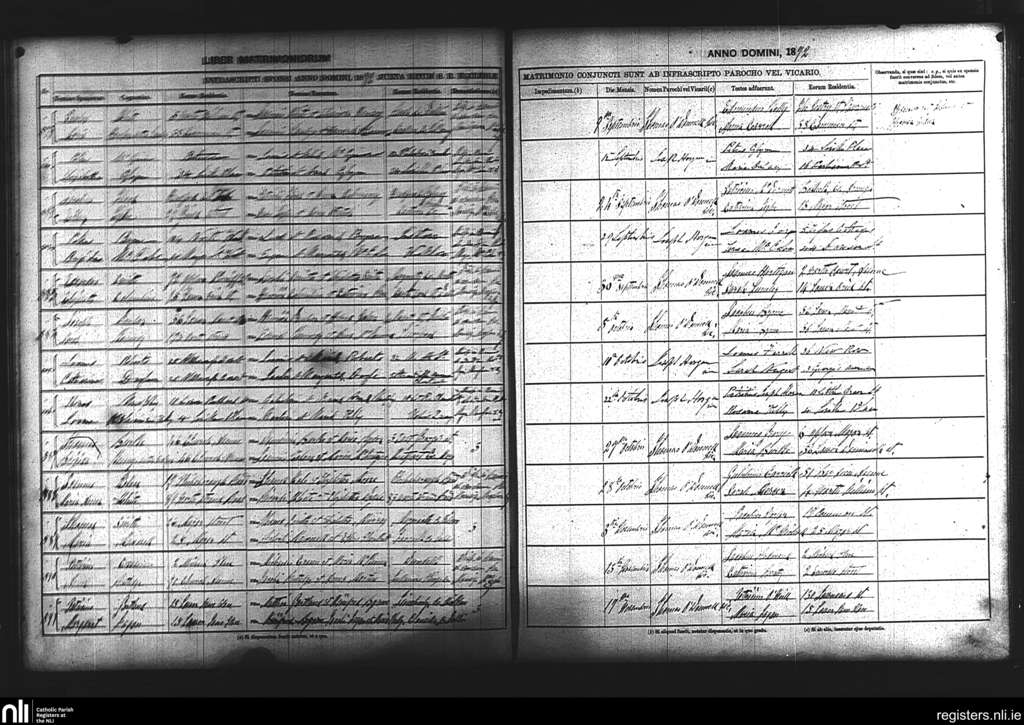 St. Laurence O'Toole's, Dublin city; County of Dublin; Archdiocese of Dublin. Marriages, Sep. 1872 to Nov. 1872