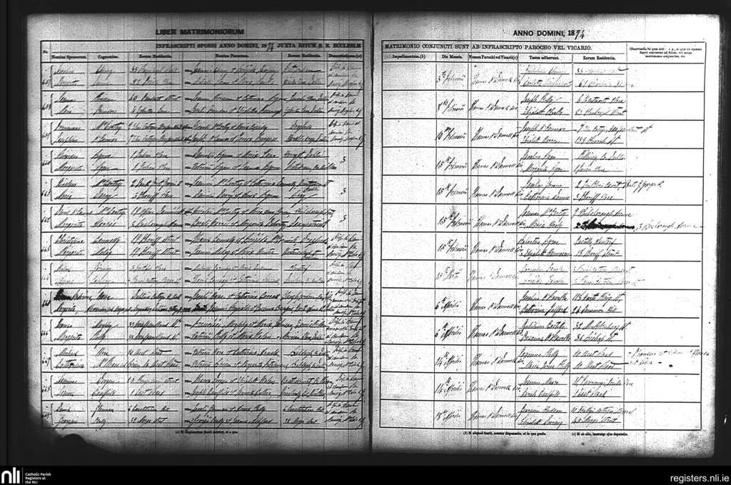 St. Laurence O'Toole's, Dublin city; County of Dublin; Archdiocese of Dublin. Marriages, Feb. 1874 to Apr. 1874