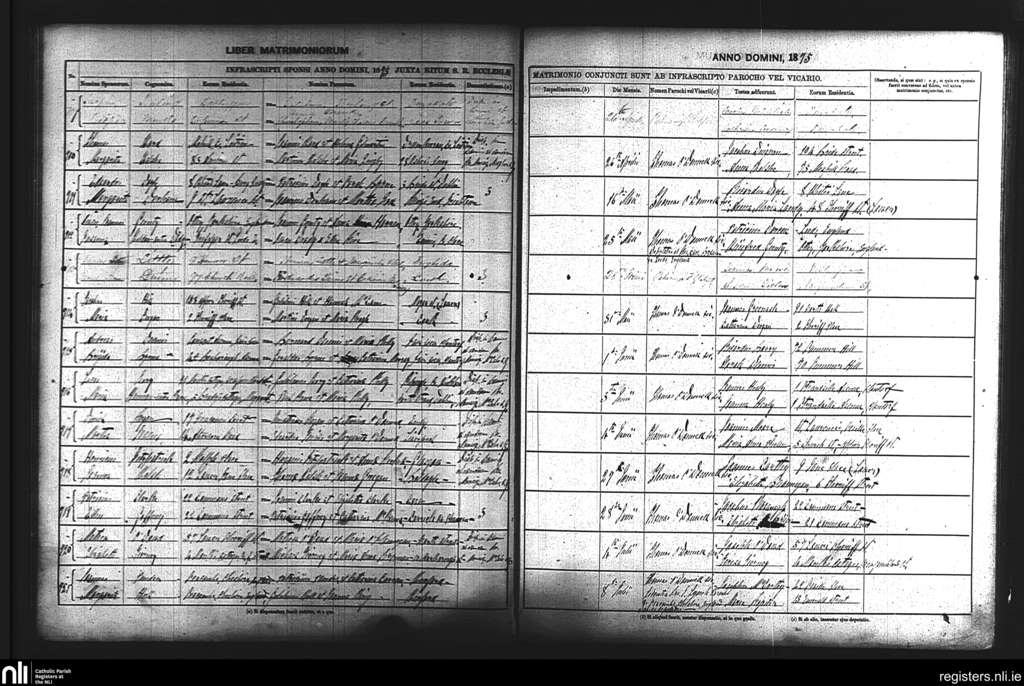 St. Laurence O'Toole's, Dublin city; County of Dublin; Archdiocese of Dublin. Marriages, Apr. 1875 to July 1875