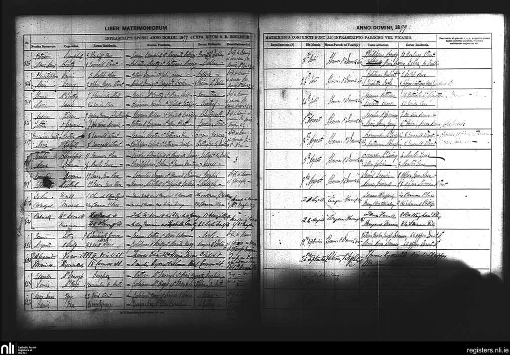 St. Laurence O'Toole's, Dublin city; County of Dublin; Archdiocese of Dublin. Marriages, July 1877 to Oct. 1877
