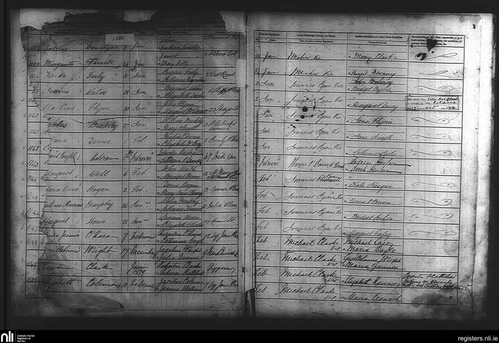 St. Laurence O'Toole's, Dublin city; County of Dublin; Archdiocese of Dublin. Baptisms, Jan. 1880 to Feb. 1880