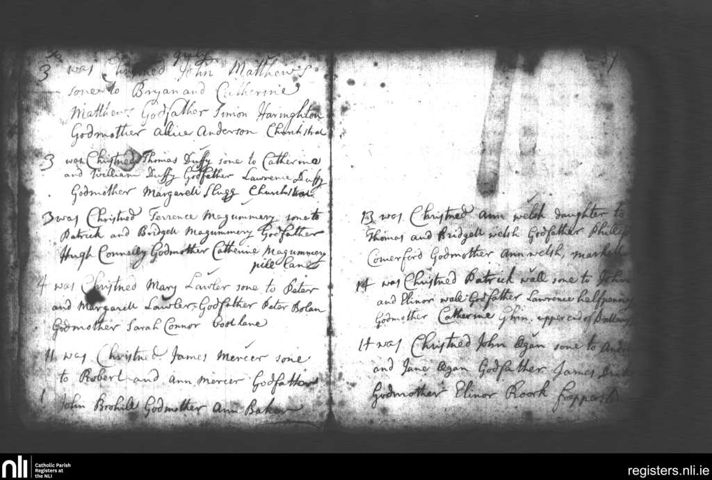 St. Michan's, Dublin city; County of Dublin; Archdiocese of Dublin. Baptisms, Marriages, July 1726