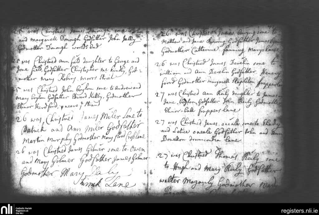 St. Michan's, Dublin city; County of Dublin; Archdiocese of Dublin. Baptisms, Marriages, July 1726