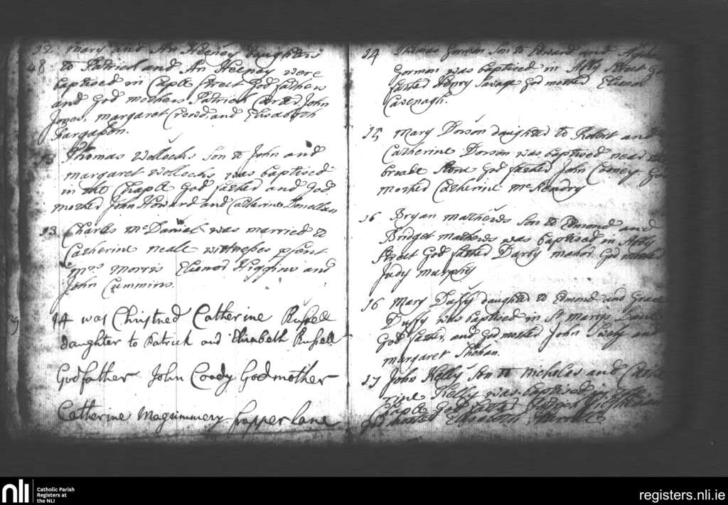 St. Michan's, Dublin city; County of Dublin; Archdiocese of Dublin. Baptisms, Marriages, Aug. 1726