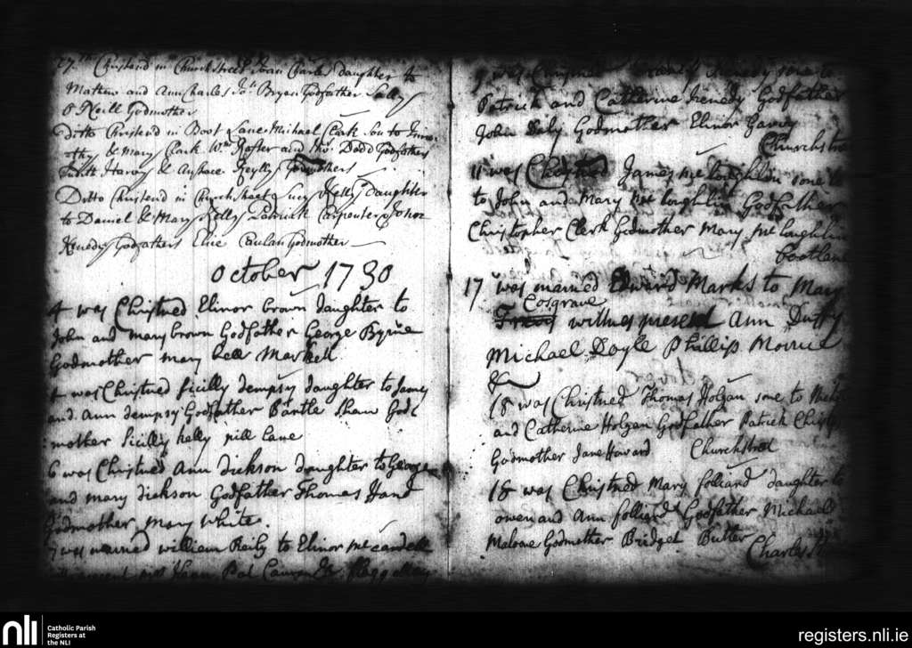 St. Michan's, Dublin city; County of Dublin; Archdiocese of Dublin. Baptisms, Sep. 1730 to Oct. 1730