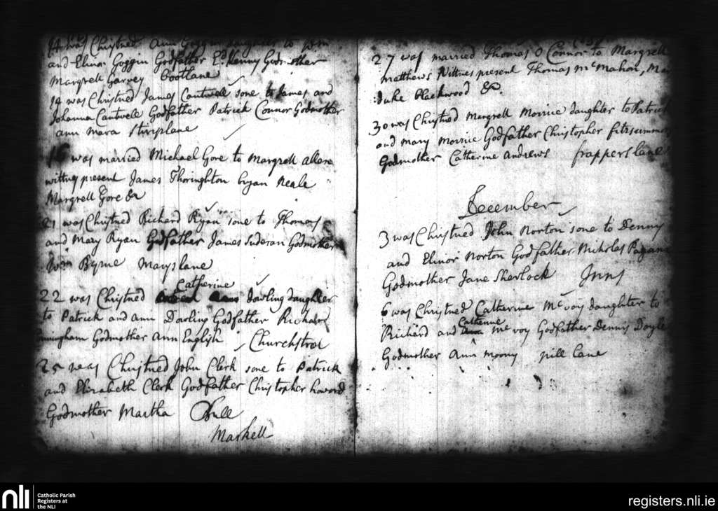 St. Michan's, Dublin city; County of Dublin; Archdiocese of Dublin. Baptisms, Nov. 1730 to Dec. 1730