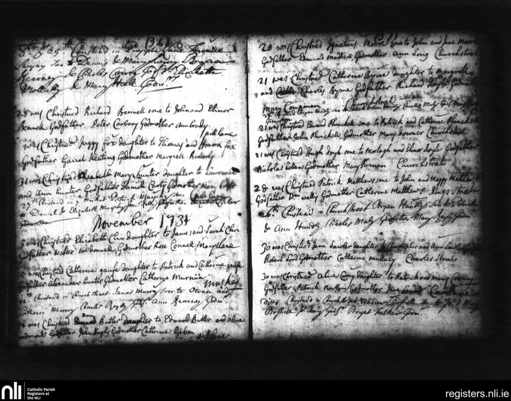St. Michan's, Dublin city; County of Dublin; Archdiocese of Dublin. Baptisms, Oct. 1731 to Nov. 1731