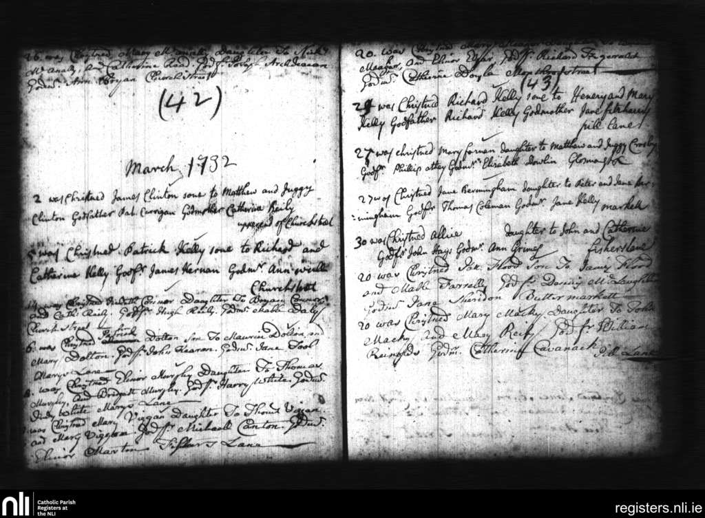 St. Michan's, Dublin city; County of Dublin; Archdiocese of Dublin. Baptisms, Feb. 1732 to Mar. 1732
