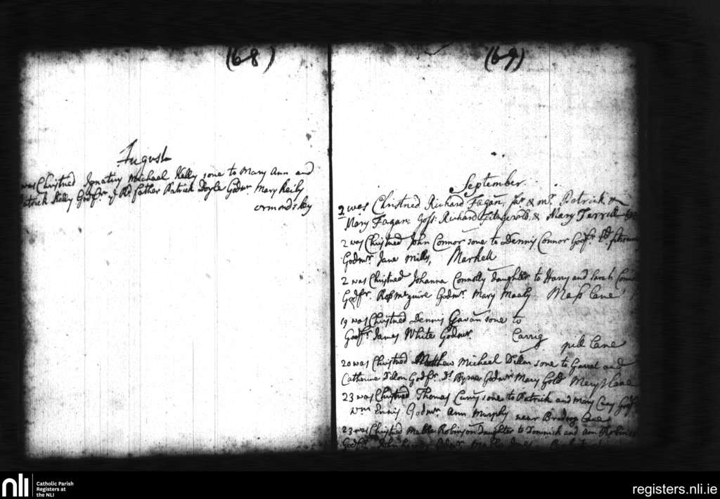 St. Michan's, Dublin city; County of Dublin; Archdiocese of Dublin. Baptisms, Aug. 1733 to Sep. 1733