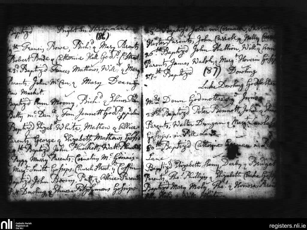 St. Michan's, Dublin city; County of Dublin; Archdiocese of Dublin. Baptisms, June 1734