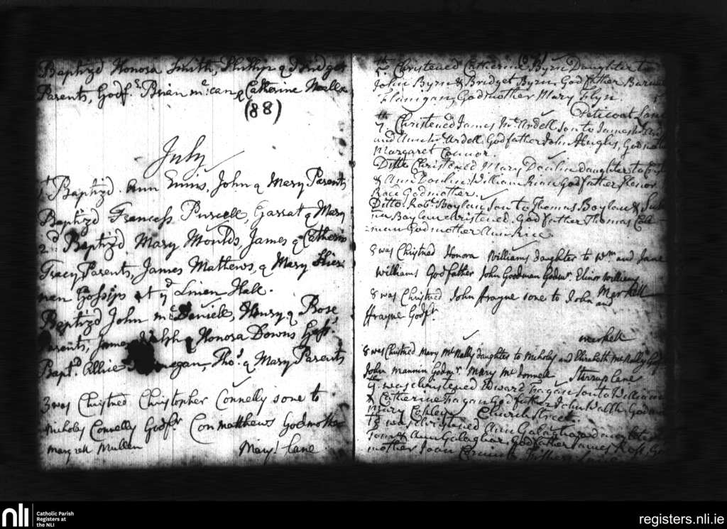 St. Michan's, Dublin city; County of Dublin; Archdiocese of Dublin. Baptisms, July 1734