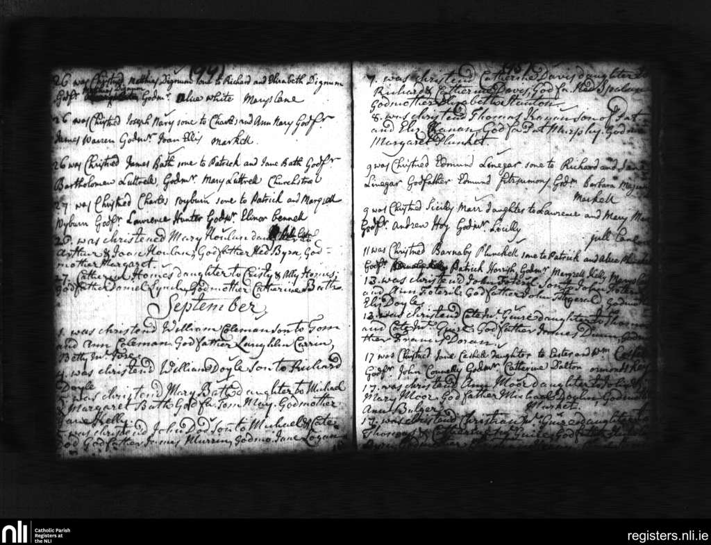 St. Michan's, Dublin city; County of Dublin; Archdiocese of Dublin. Baptisms, Aug. 1734 to Sep. 1734