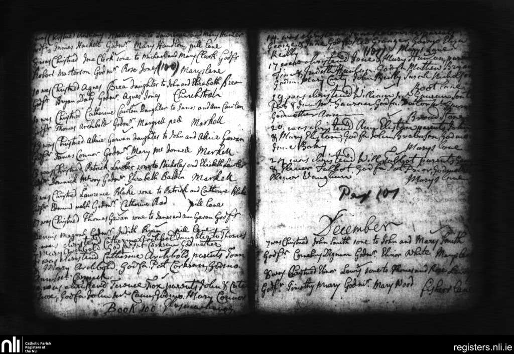 St. Michan's, Dublin city; County of Dublin; Archdiocese of Dublin. Baptisms, Nov. 1734 to Dec. 1734