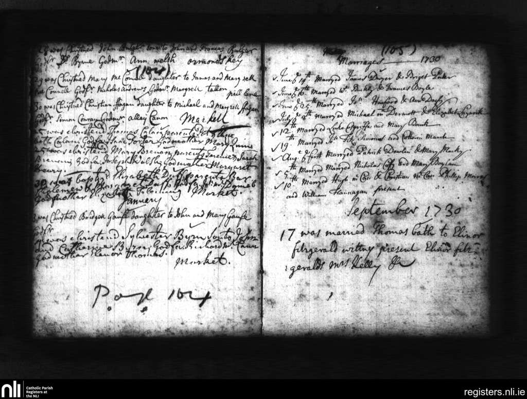 St. Michan's, Dublin city; County of Dublin; Archdiocese of Dublin. Baptisms, Marriages, June 1730 to Jan. 1735
