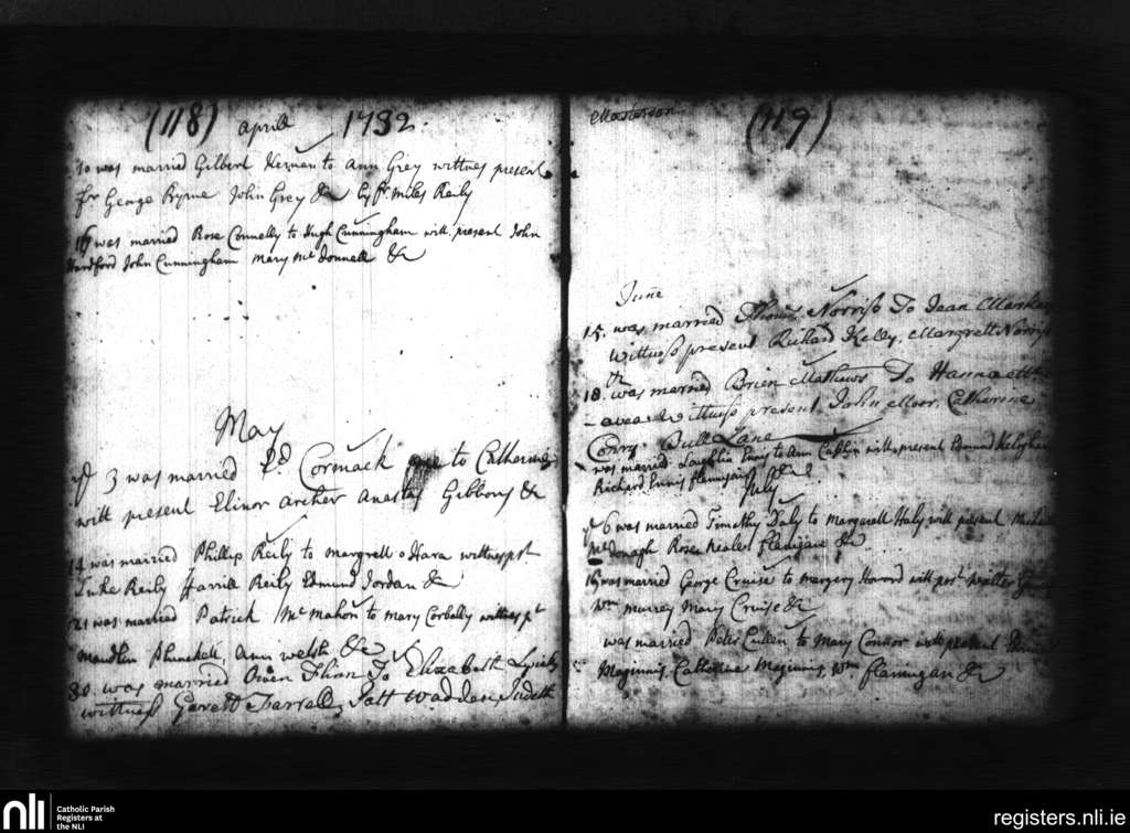 St. Michan's, Dublin city; County of Dublin; Archdiocese of Dublin. Marriages, Apr. 1732 to July 1732