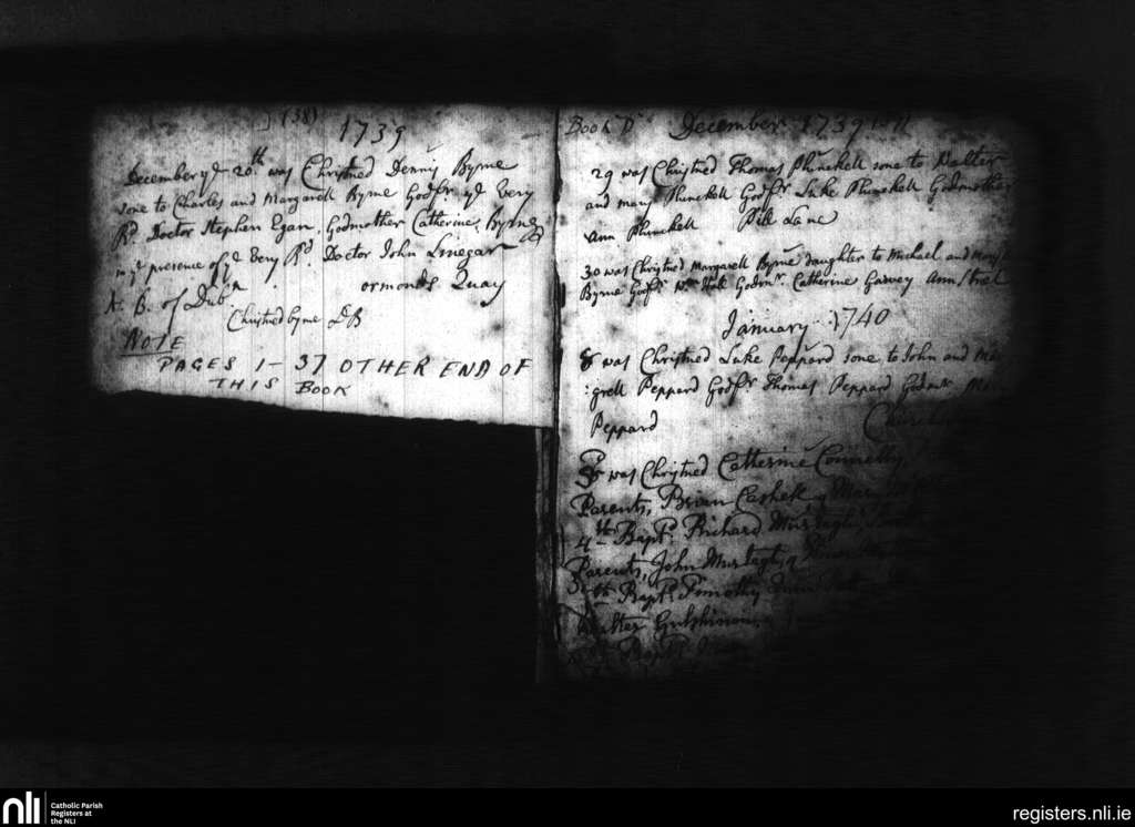 St. Michan's, Dublin city; County of Dublin; Archdiocese of Dublin. Baptisms, Dec. 1739 to Jan. 1740