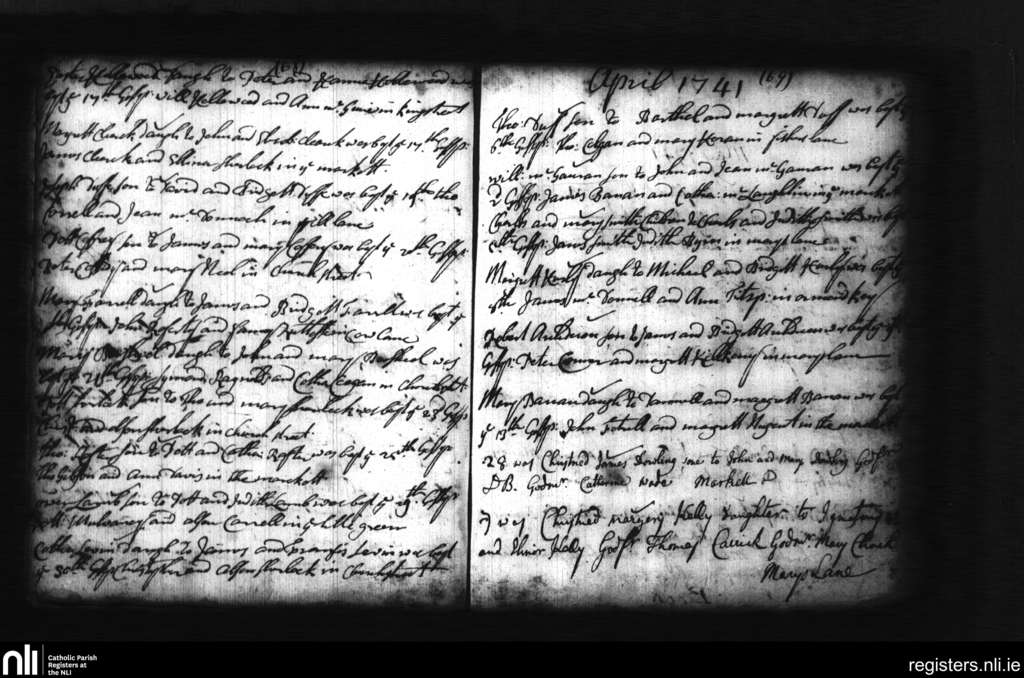 St. Michan's, Dublin city; County of Dublin; Archdiocese of Dublin. Baptisms, Mar. 1741 to Apr. 1741