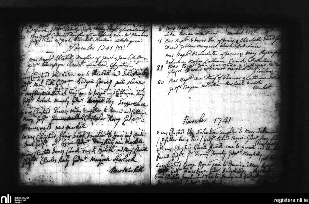 St. Michan's, Dublin city; County of Dublin; Archdiocese of Dublin. Baptisms, Oct. 1741 to Nov. 1741