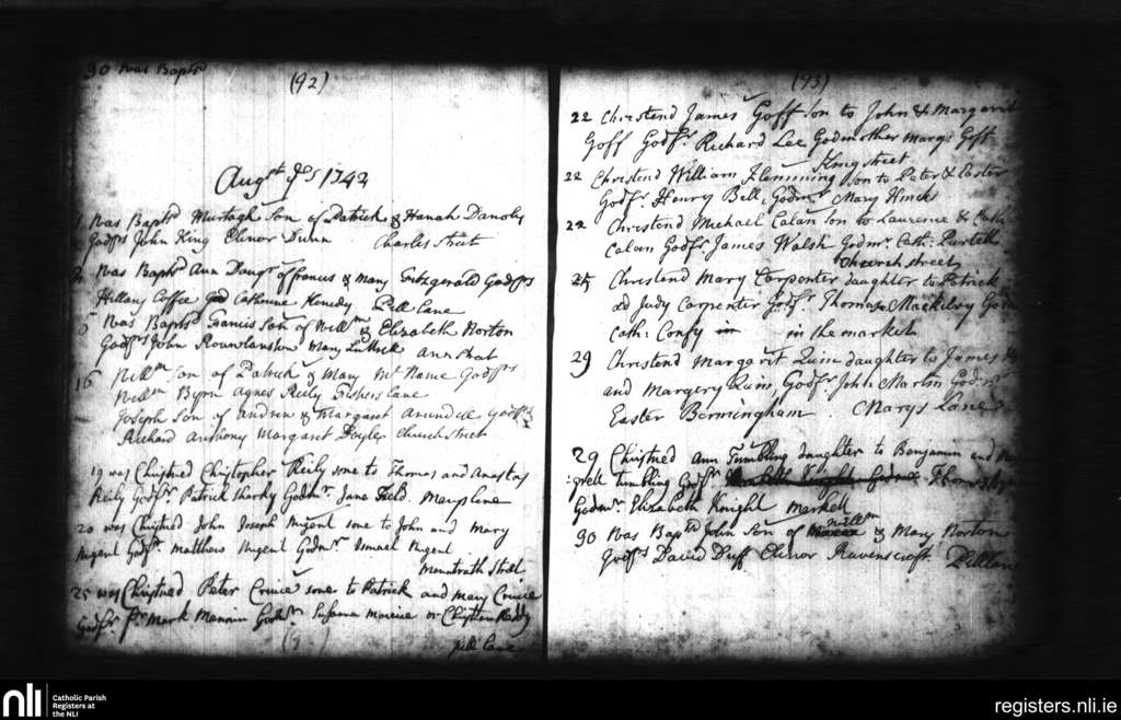 St. Michan's, Dublin city; County of Dublin; Archdiocese of Dublin. Baptisms, Aug. 1742