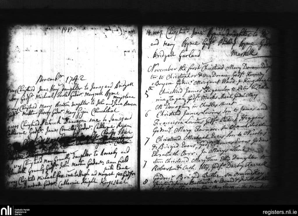 St. Michan's, Dublin city; County of Dublin; Archdiocese of Dublin. Baptisms, Nov. 1742