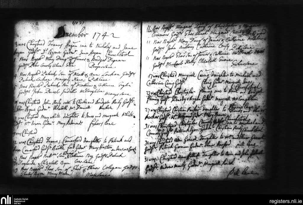 St. Michan's, Dublin city; County of Dublin; Archdiocese of Dublin. Baptisms, Dec. 1742