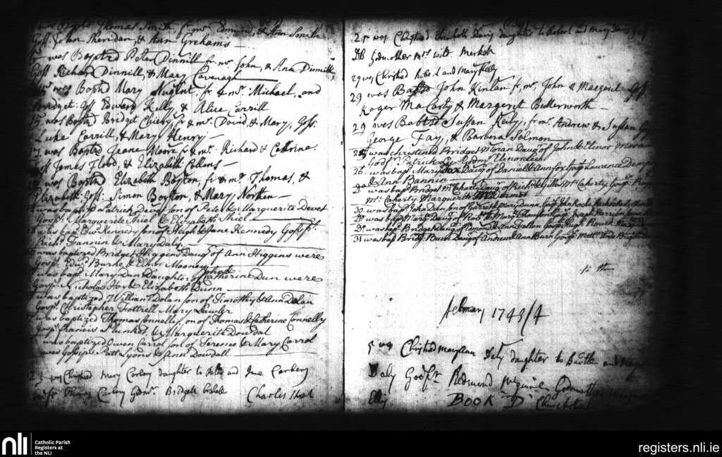 St. Michan's, Dublin city; County of Dublin; Archdiocese of Dublin. Baptisms, Jan. 1744 to Feb. 1744