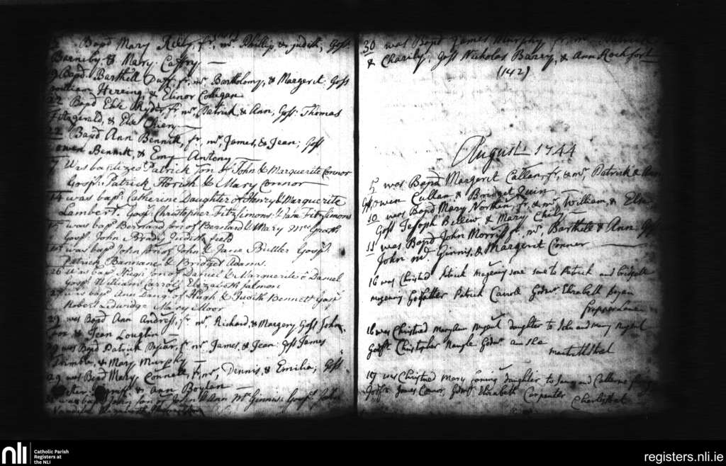 St. Michan's, Dublin city; County of Dublin; Archdiocese of Dublin. Baptisms, July 1744 to Aug. 1744