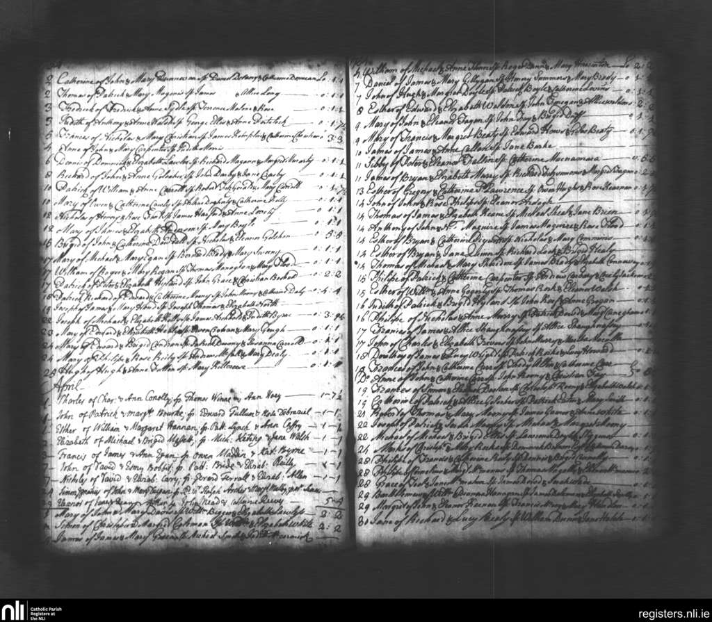 St. Michan's, Dublin city; County of Dublin; Archdiocese of Dublin. Baptisms, Mar. 1754 to Apr. 1754