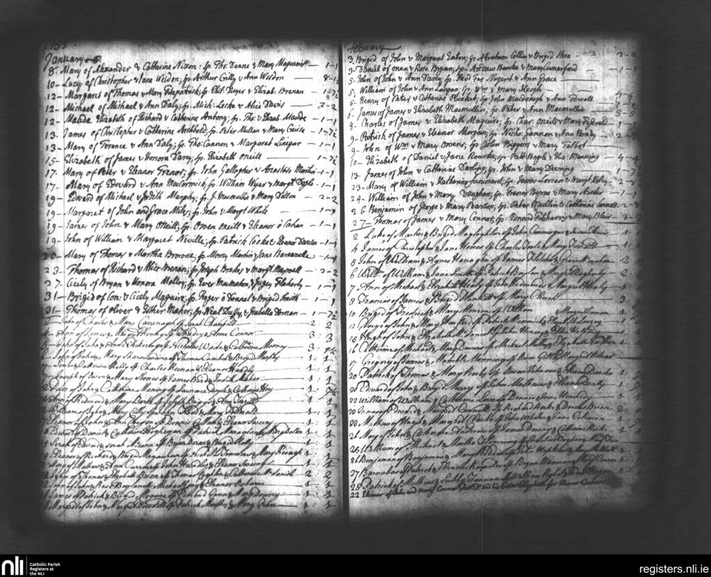 St. Michan's, Dublin city; County of Dublin; Archdiocese of Dublin. Baptisms, Jan. 1755 to Feb. 1755