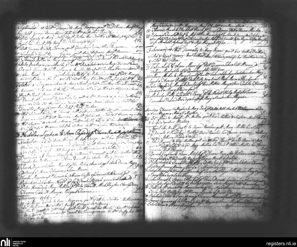 St. Michan's, Dublin city; County of Dublin; Archdiocese of Dublin. Marriages, Sep. 1765 to Apr. 1766