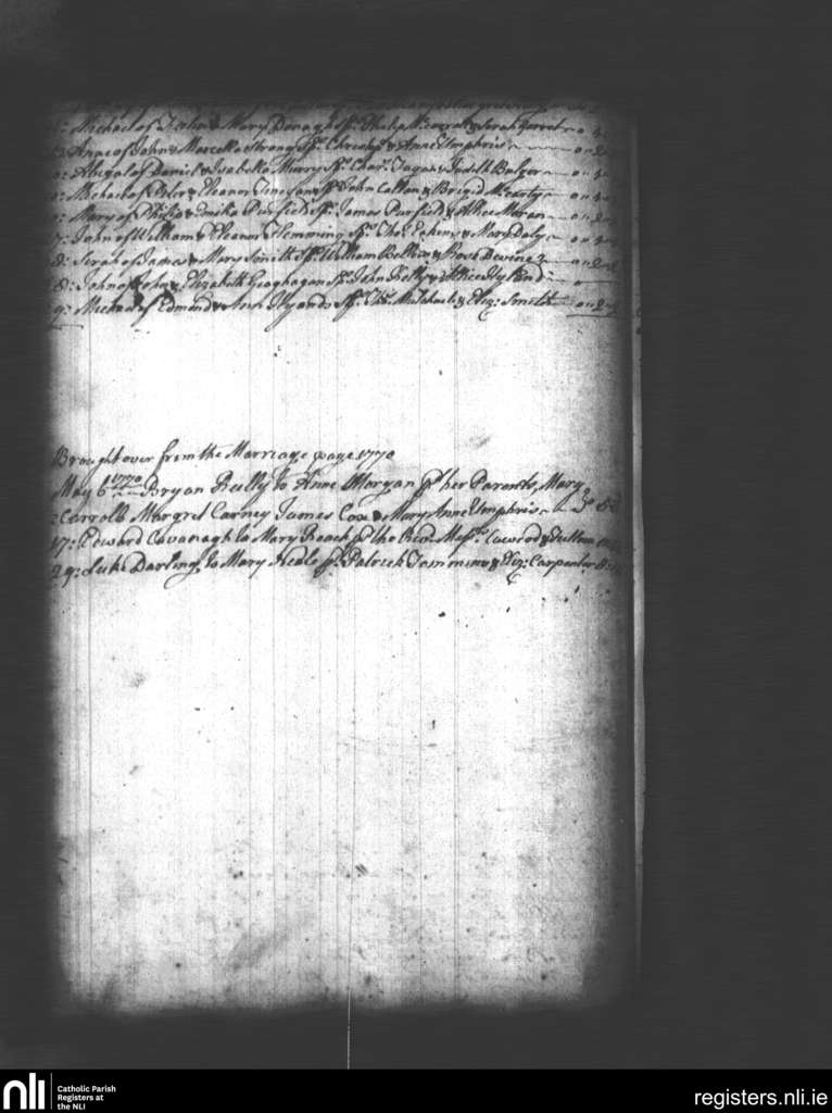 St. Michan's, Dublin city; County of Dublin; Archdiocese of Dublin. Baptisms, Marriages, May 1770