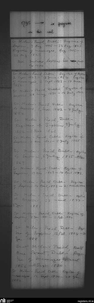 St. Michan's, Dublin city; County of Dublin; Archdiocese of Dublin. Baptisms, Marriages