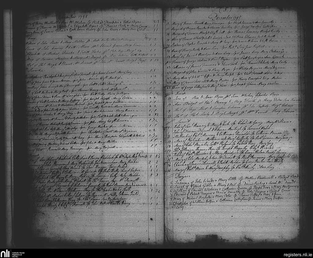 St. Michan's, Dublin city; County of Dublin; Archdiocese of Dublin. Baptisms, Nov. 1795 to Dec. 1795