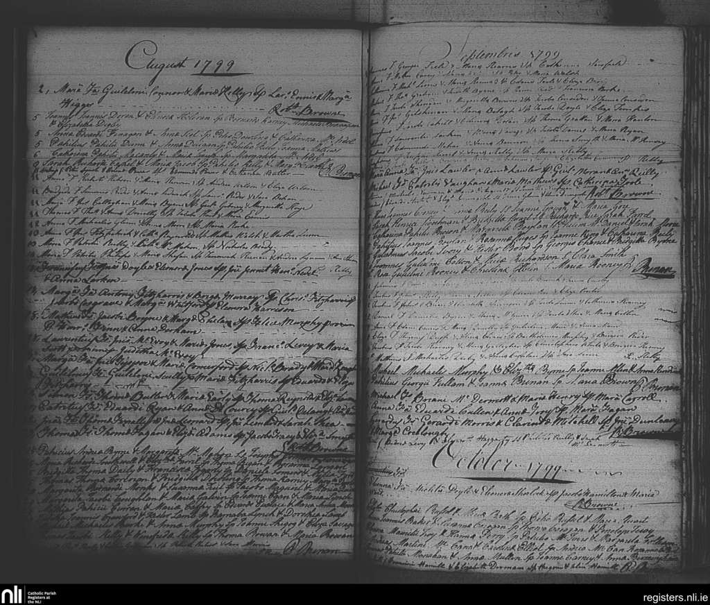 St. Michan's, Dublin city; County of Dublin; Archdiocese of Dublin. Baptisms, Aug. 1799 to Oct. 1799