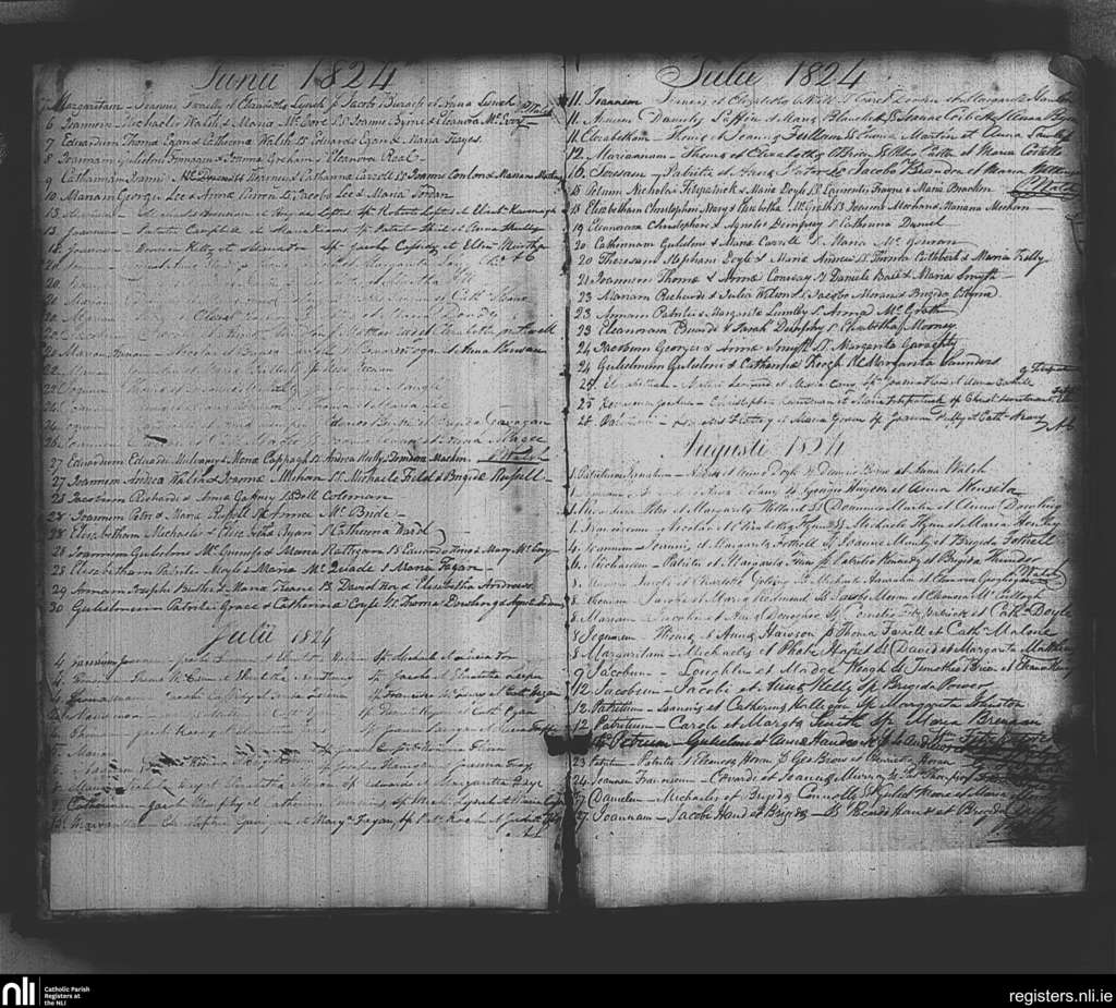 St. Michan's, Dublin city; County of Dublin; Archdiocese of Dublin. Baptisms, June 1824 to Aug. 1824