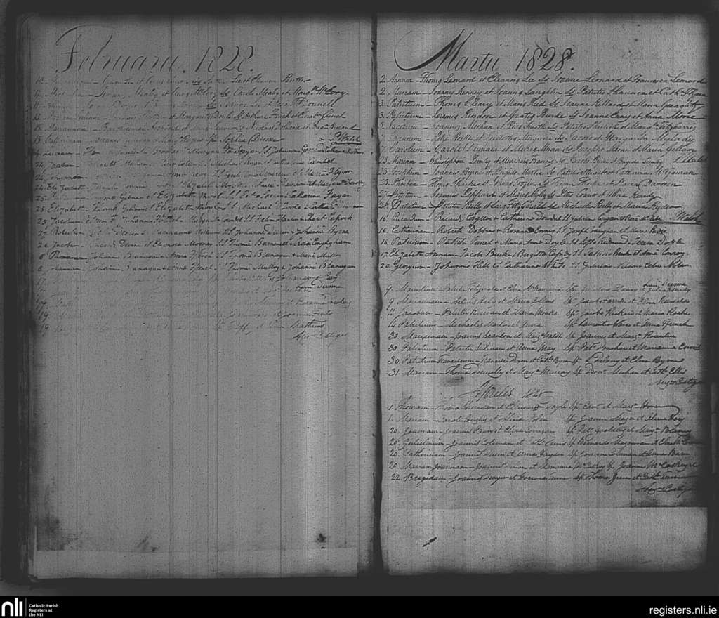 St. Michan's, Dublin city; County of Dublin; Archdiocese of Dublin. Baptisms, Feb. 1828 to Apr. 1828