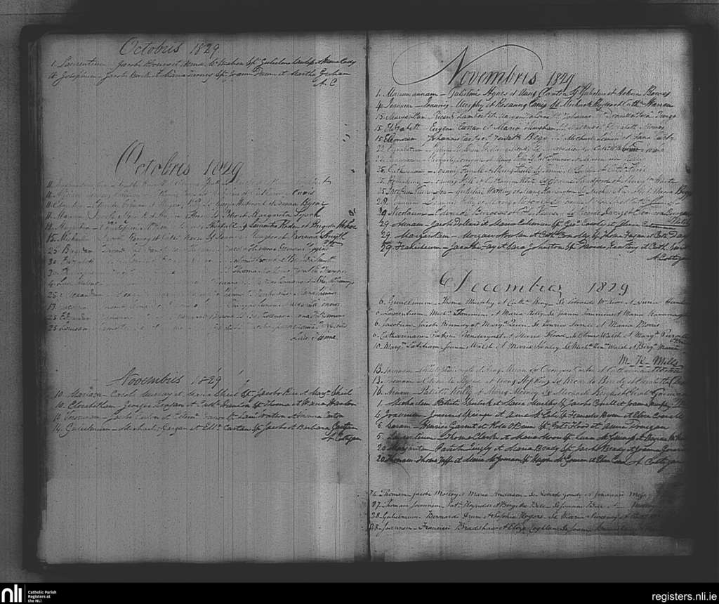 St. Michan's, Dublin city; County of Dublin; Archdiocese of Dublin. Baptisms, Oct. 1829 to Dec. 1829