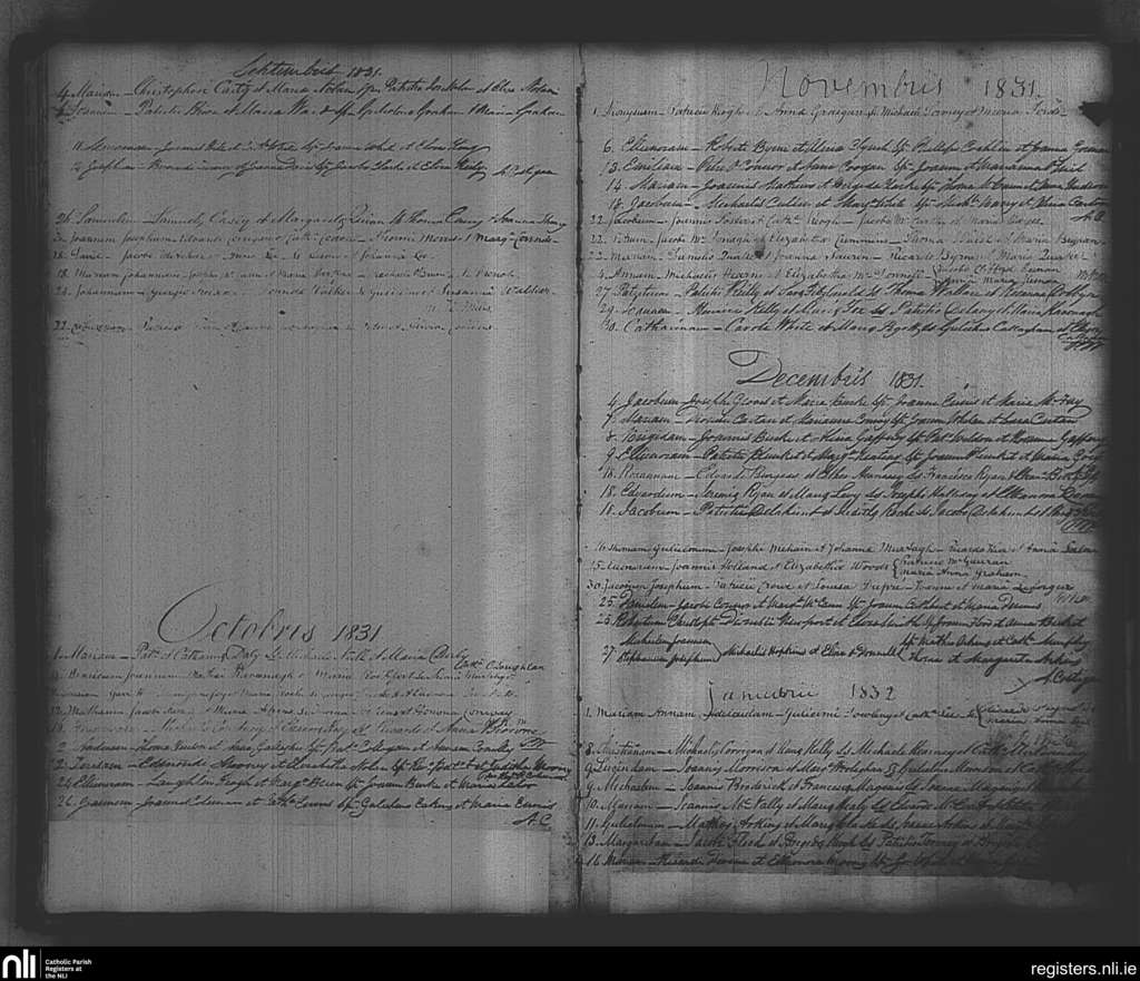 St. Michan's, Dublin city; County of Dublin; Archdiocese of Dublin. Baptisms, Sep. 1831 to Jan. 1832