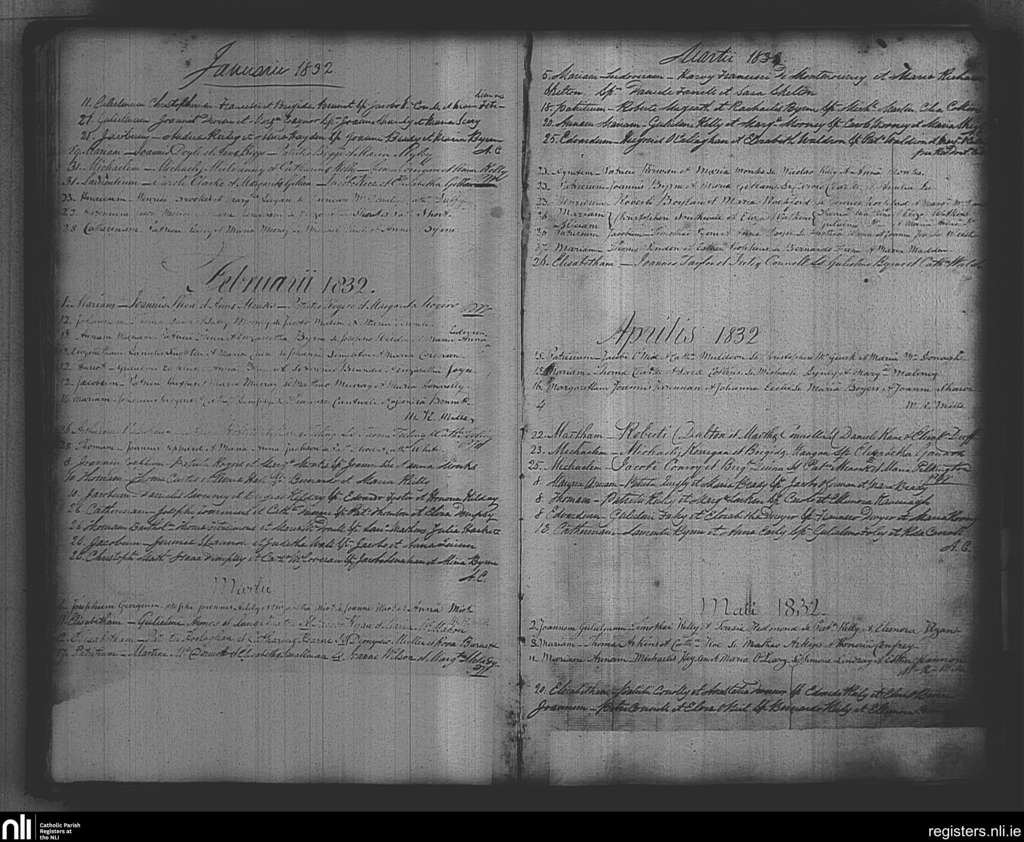 St. Michan's, Dublin city; County of Dublin; Archdiocese of Dublin. Baptisms, Jan. 1832 to May 1832