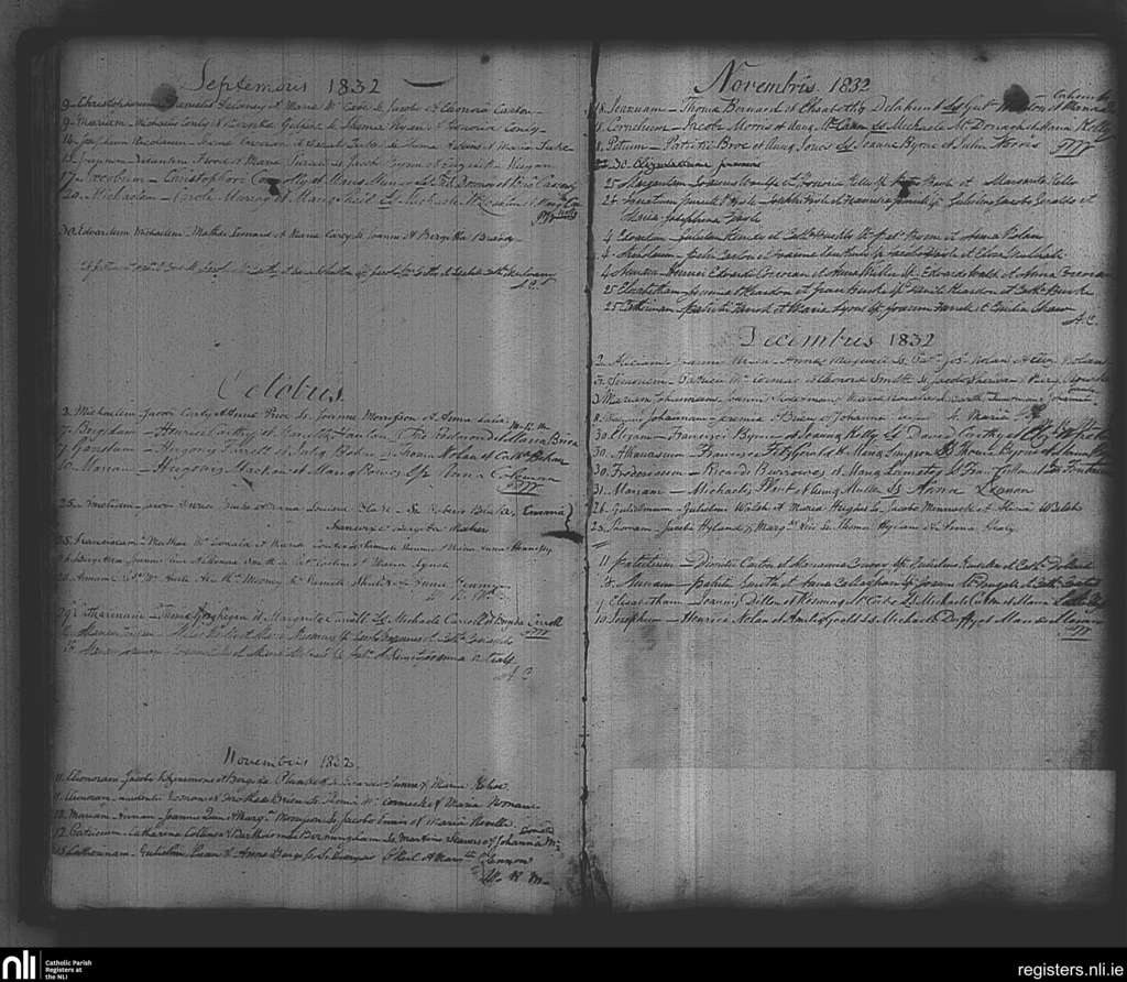 St. Michan's, Dublin city; County of Dublin; Archdiocese of Dublin. Baptisms, Sep. 1832 to Dec. 1832