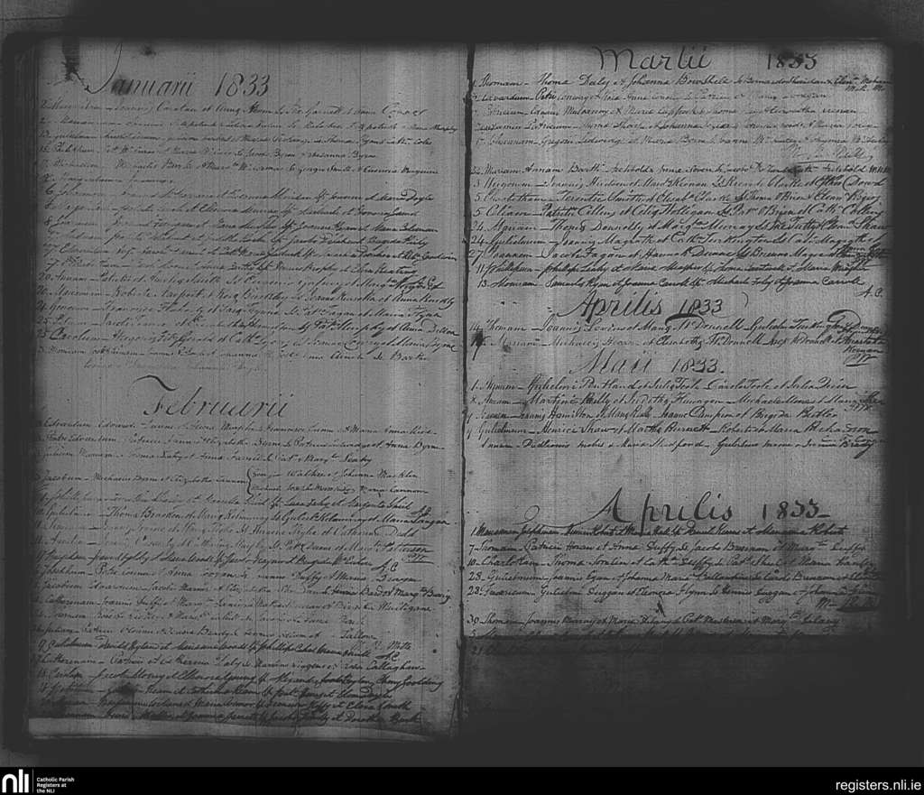 St. Michan's, Dublin city; County of Dublin; Archdiocese of Dublin. Baptisms, Jan. 1833 to May 1833
