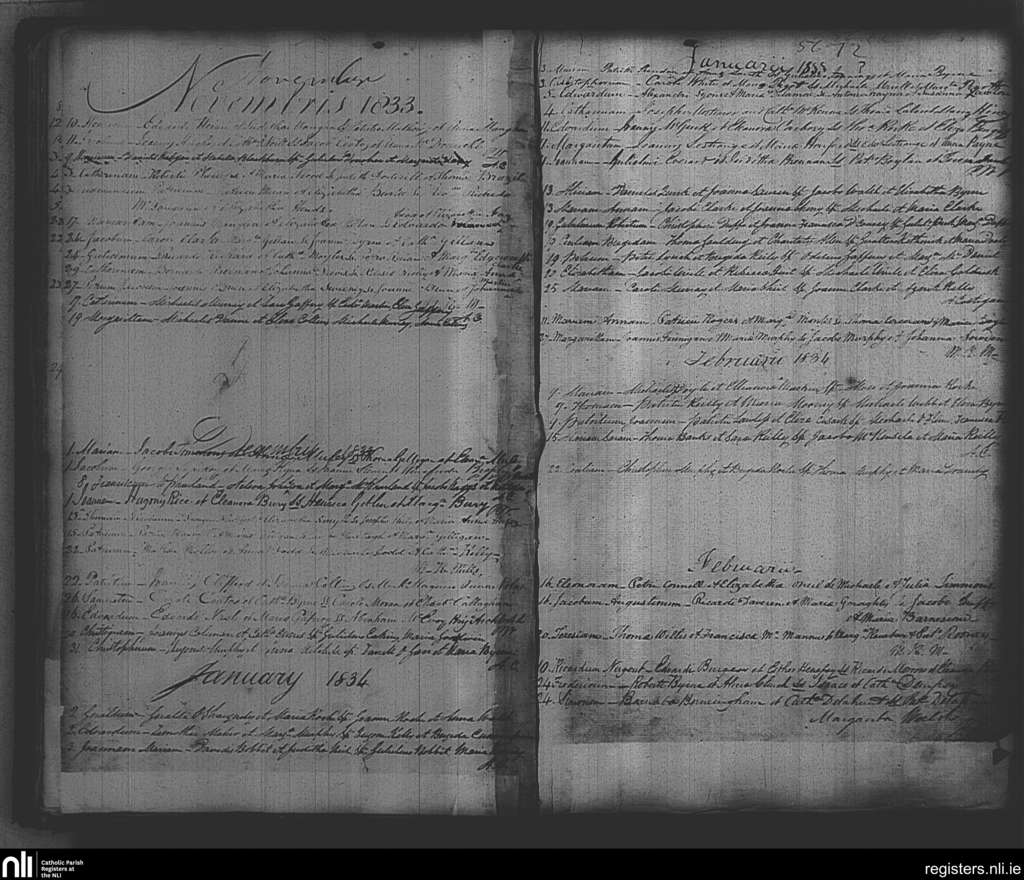 St. Michan's, Dublin city; County of Dublin; Archdiocese of Dublin. Baptisms, Nov. 1833 to Feb. 1834