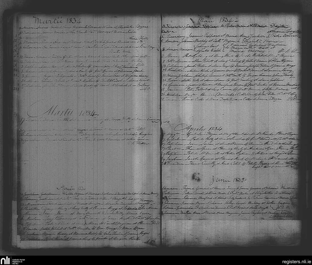 St. Michan's, Dublin city; County of Dublin; Archdiocese of Dublin. Baptisms, Mar. 1834 to June 1834